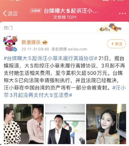 3. 大S的付出:汪小菲表示,自己非常感激大S对他的包容和支持。他承认,自己曾经因为工作忙碌而忽略了家庭,但大S始终陪伴在他身边。